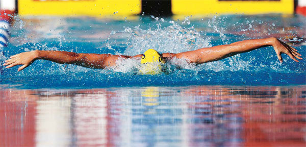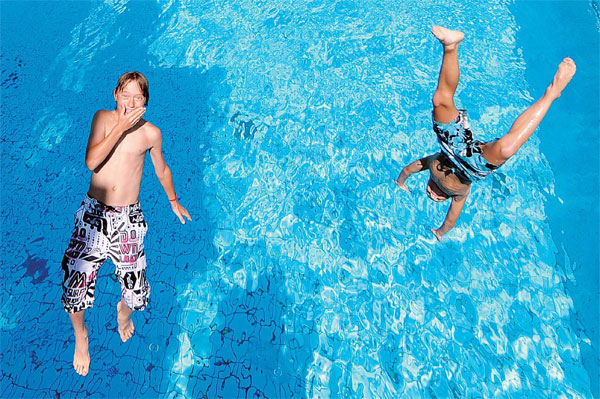 무더위가 기승을 부리는 독일의 한 수영장에서 4일 한 어린이가 다이빙을 하며 수영을 즐기고 있다.