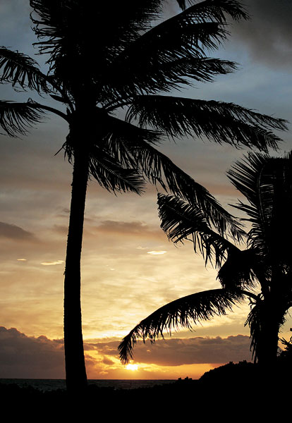 버락 오바마 대통령이 휴가 중인 하와이에 동이 트고 있다.