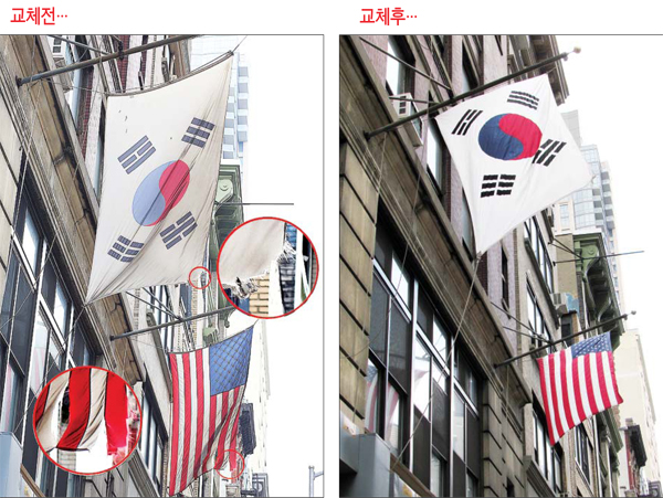 태극기 교체..