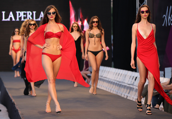 27일 오후 서울 중구 동대문디자인플라자에서 열린 ‘럭서리 브랜드 모델 어워즈’ 수영복 패션쇼에서 모델들이 포즈를 취하고 있다.