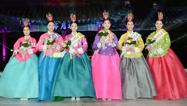 전국 미녀들의 '등용문'인 전국 춘향선발대회에서 미스 춘향에 뽑힌 입상자들이 포즈를 취하고 있다. 이들은 21일 오후 전북 남원시 광한루원에서 제85회 춘향제의 사전행사로 열린 춘향선발대회에서 뛰어난 미모를 자랑하며 미스 춘향의 계보를 이었다.