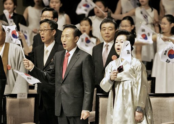 제89주년 3.1절 기념식이 1일 오전 서울시내 세종문화회관에서 이명박 대통령을 비롯한 5부 요인과 각계 대표 등 3천여명이 참석한 가운데 열렸다. 이날 기념식은 실용주의를 지향하는 새 정부의 국정철학에 맞게 행사장 시설과 장식, 단상 인사 배치 등에서 과거와는 달리 간소화를 추구하거나 격식을 파괴해 눈길을 끌었다. 특히 대통령 좌석도 예전에는 다른 3부 요인보다 앞으로 돌출시켜 배치했으나 이번에는 다른 요인들과 나란히 배치했고, 대통령과 주요인사들이 드나드는 단상 입구 통로 역시 목제 벽면시설을 이용한 제작물 대신 간이 칸막이로 통로임을 표시하는 방식으로 단순화했다. (서울=연합뉴스) 이강원 기자