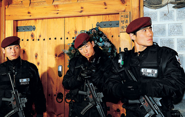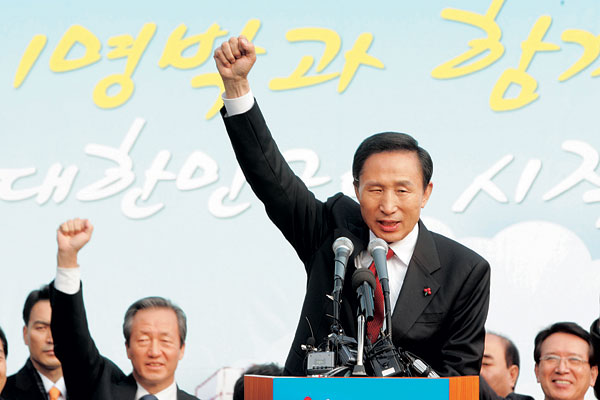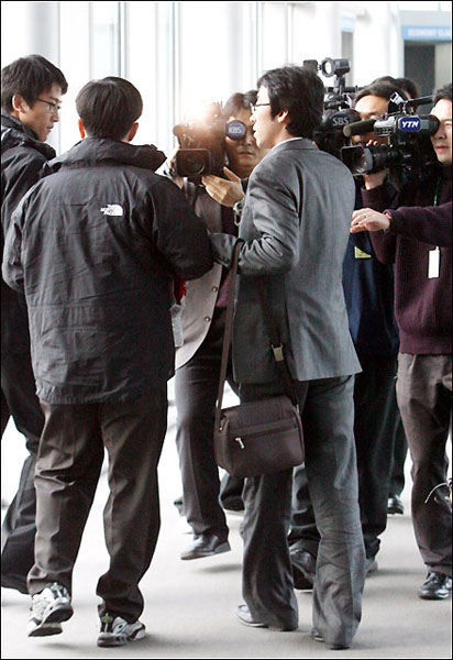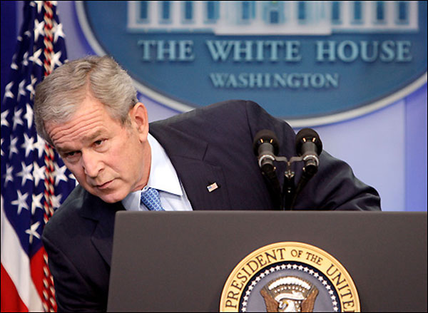 20일(현지시각) 미국 백악관 기자 관담회에서 부시 대통령이 회견 도중 고개를 옆으로 숙이고 있다.(AP=연합)
