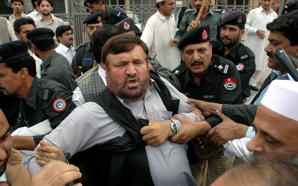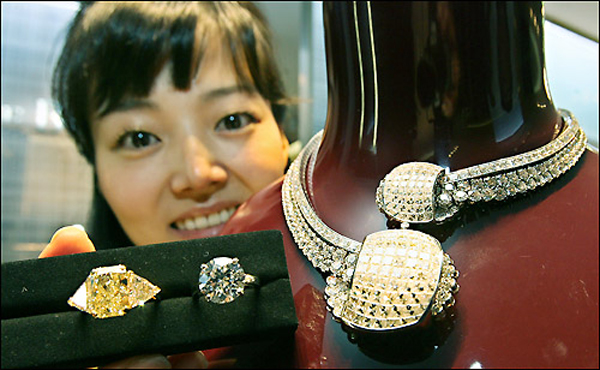 안젤리나 졸리(오른쪽)가 자신이 출연한 영화 베어울프 LA 시사회장에서 브래드 피트와 다정한 포즈를 취하고 있다.