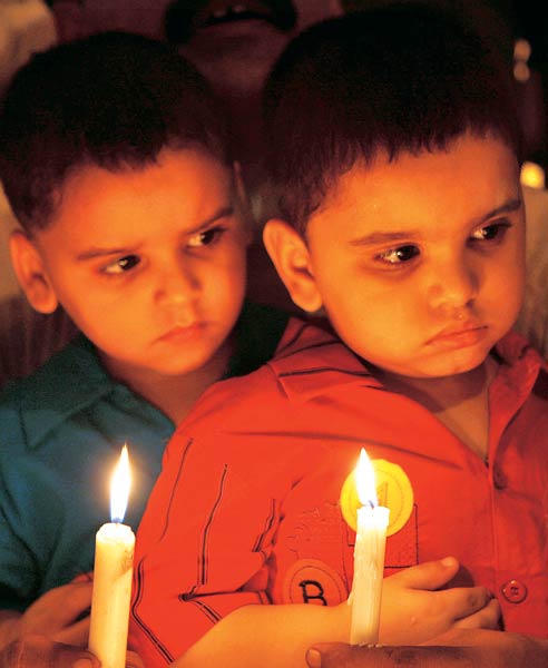 수주 전 회교 근본주의자들과 정부군 간 대치극이 발생했던 파키스탄의 랄 마스지드 사원에서 열린 추모식에서 어린이들이 촛불을 들고 있다. 파키스탄 정부군의 진압작전으로 사원 내에서 대치극을 벌이던 100여명이 사망했다.