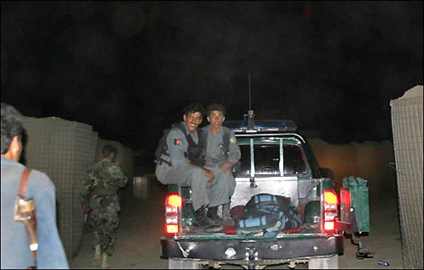 25일 아프가니스탄 가즈니주에서 현지경찰이 탈레반에 의하 살해된 배형규 목사의 시신을 차량에 싣고 이동하고 있다. 외신들은 이날 아프간 관리의 말을 인용, 배 목사의 시신이 가즈니주 내 미군 기지로 옮겨졌다고 보도했다. (AP=연합)