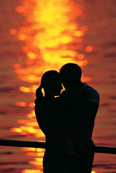 루마니아 부쿠레슈티에서 22일 한 커플이 호숫가에서 저녁놀을 맞이하고 있다. 부쿠레슈티는 이날 화씨 108도로 유난히 무더운 날씨가 계속돼 혹서 사망자수가 34명으로 늘어났다.