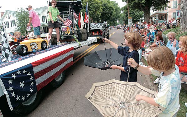 늘 오늘만 같으면 -펜실베니아 밀빌 시내에서 열린 퍼레이드 도중 연도에 구경나온 어린이들이 행진차량에 탄 사람들이 던지는 사탕을 우산으로 받으며 즐거워하고 있다.