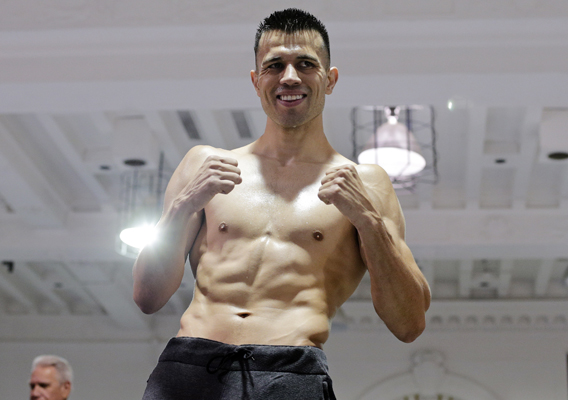 권투선수 프란스시크 산타나가 22일 뉴욕에서 25일 메디슨 스퀘어가든에서 열리는 사담 알리와의 웰터급 경기에 앞서 포즈를 취하고있다.