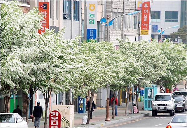 전남 목포시내 도로변에 심어진 이팝나무가 하얀 꽃을 활짝 터트려 눈이 내린 듯 착각을 불러 일으키게 하고 있다. (목포=연합뉴스)