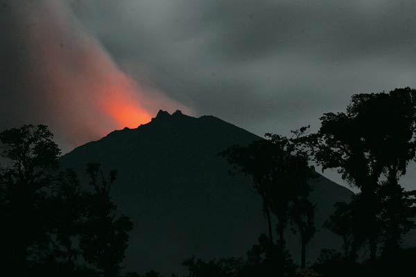 에콰도르의 퀴토시에서 북동쪽으로 60마일 떨어진 아마존 정글 고지의 활화산 엘 레벤타도르에서 25일 분출되는 붉은 용암으로 산불이 난 듯하다.