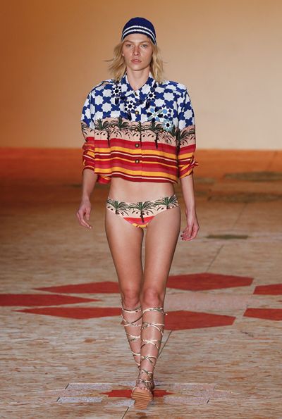 브라질에서 15일 열리고 있는 패션주간 행사에서 한 모델이 수영복을 선보이고 있다.