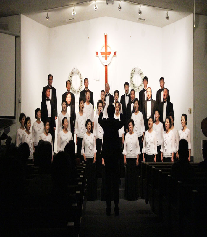 매스터 코랄 합창단(단장 정지선)은 지난 11일 프레즈노 한인장로교회 초청으로 프레즈노를 방문해 연주회를 가졌다. 동 합창단은 이날 조영빈 지휘, 안영실 반주로 흑인영가와 '참 좋으신 주님', '왕이신 나의 하나님', '여호와는 나의 목자'등을 선사했다. 또 솔리스트로 참가한 이석창(비목), 이우정(오솔레미오), 조아라(축복 하노라)씨등이 아름다운 음률을 선보였다. 이날 공연에서 합창단원들이 조영빈 지휘자의 지휘로 공연을 펼치는 모습.