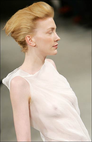 24일 프랑스 파리에서 펼쳐진 2007 S/S 오뜨 꾸뛰르 컬렉션에서 모델들이 디자이너 장 폴 고티에의 의상을 선보이고 있다. (AP=연합)