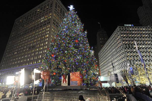 디트로이트 캠퍼스 마리터스팍에 설치된 대형 크리스마스트리가 연말을 알리며 세상을 밝히고 있다.