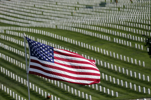 나라를 위해 싸우고 목숨을 바친 재향군인을 기리기 위한 베테란스 데이를 하루 앞둔 10일 산 부르노에 있는 골든게이트 국립묘지에 안장된 수많은 전몰장병의 비석위로 대형 성조기가 나부끼고 있다. 베테란스데이에는 전국에서 재향군인을 기념하는 각종 행사가 열린다.