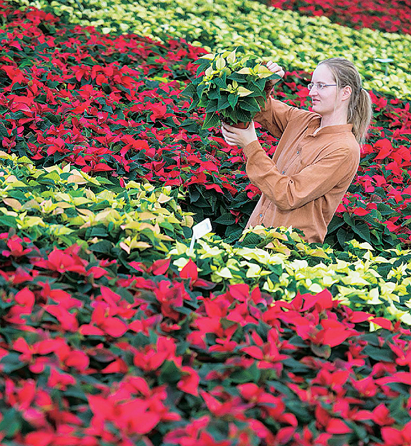 크리스마스 장식용으로 독일에서 매년 4,000만 그루가 팔려나가는 포인세티아가 4일 마지막 단장을 마치고 있다.