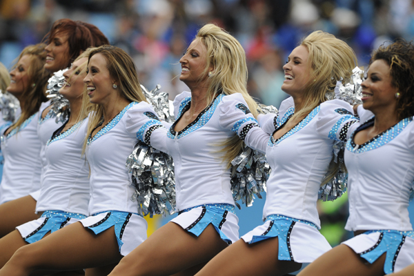 미프로 미식축구(NFL) 캐롤라이나 팬서스 치어리더들이 27일 뉴올리언스 세인츠와의 경기에서 경쾌한 율동을 선보이고 있다.