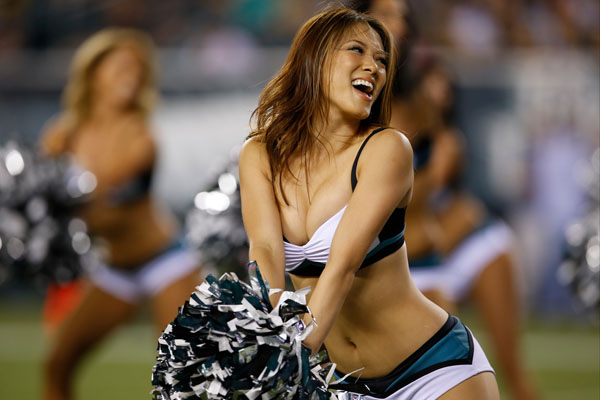 피츠버그에서 열린 필라델피아 이글스와 피츠버그 스틸러스의 NFL 시범경기에서 21일 이글스 치어걸들이 나와 멋진 군무를 펼치고 있다.