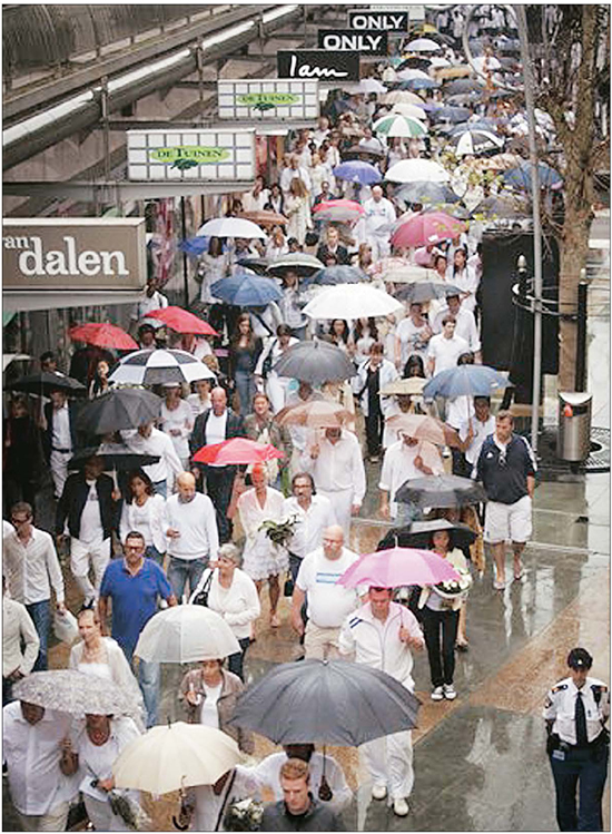 네덜란드의 로테르담에서 수백명의 시민들이 21일 말레이시아 항공 희생자들을 애도하는 행진을 벌이고 있다.