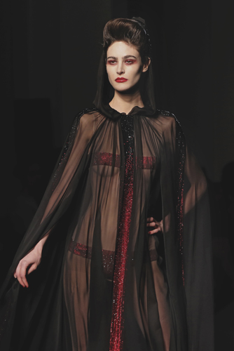 한 모델이 9일 파리에서 열린 추동 기성복 패션쇼에서 캣 워킹하고 있다.