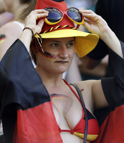 독일 축구팬이 16일 브라질에서 열린 독일과 포르투갈과의 G조 예선경기에서 응원하고 있다.