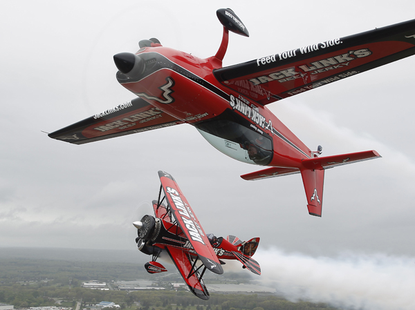 리치몬드 노스킹스타운 상공에서 비행기 두 대가 공중 곡예비행을 하고 있다.