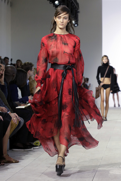 뉴욕에서 열리고 있는 뉴욕패션주간 행사에서 16일 모델들이 내년 봄 기성복을 선보이고 있다.