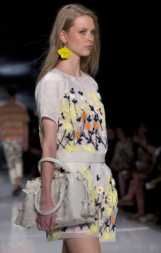 브라질 상파울루에서 열린 상파울루 패션주간 행사에서 한 모델이 브라질 패션디자이너의 의상을 입고 무대를 걷고 있다.