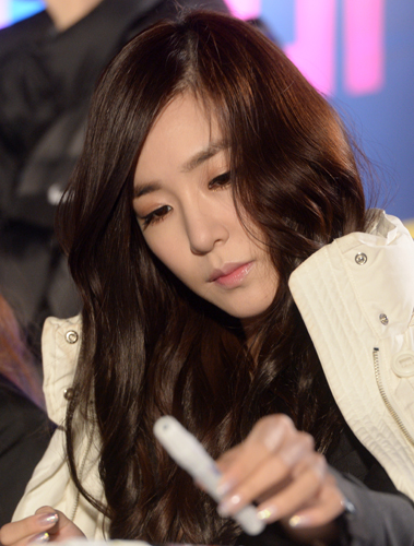 새 미니앨범 '미스터미스터(Mr.Mr.)'로 돌아온 소녀시대가 16일 오후 서울 청계천로 청계광장에서 팬 사인회를 열었다. 티파니가 팬에게 사인을 해주고 있다.