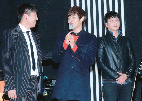 서울 강남구 삼성동 클럽 뱅가드에서 열린 TV 조선 주말드라마 ‘백년의 신부’ 제작발표회에서 배우 이홍기가 계단에서 내려오는 양진성(오른쪽)의 손을 잡아주고 있다.