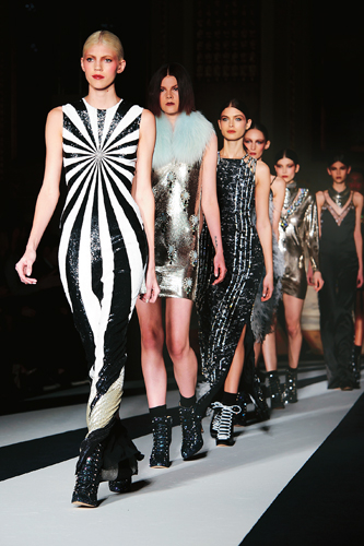 영국의 윌리엄 왕자가 16일 팔등신 여성의 에스코트를 받으며 영국 아카데미 시상식에 도착하고 있다.