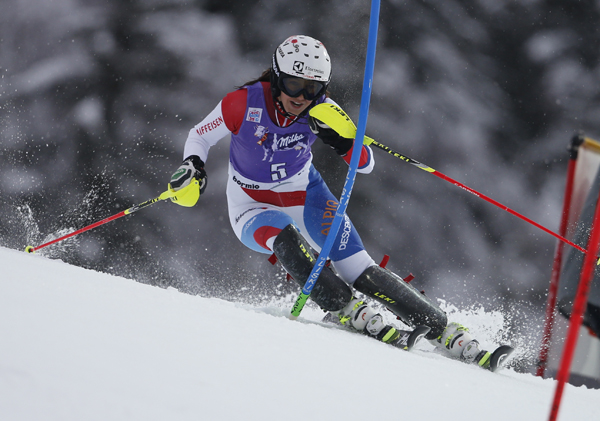 스위스의 웬디 홀드너가 22일 이탈리아에서 열리고 있는 여자 월드컵 스키대회에서 알파인 1라운드에서 활강하고 있다.