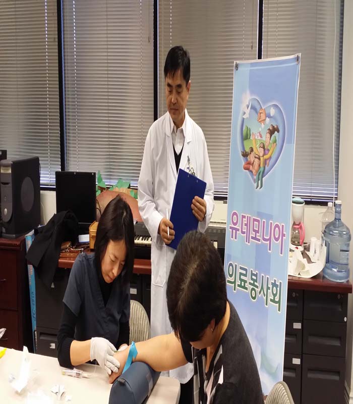혈액검사로 암 위험여부 밝힌다 유데모니아 의료봉사회(이사장 김대용·원장 위재국)는 13일 2차 스마트 암검진을 실시했다. 혈액검사만으로 6대 암(폐암, 간암, 위암, 대장암, 유방암, 전립선암)의 위험성 여부를 찾는 스마트 암검진은 기존 혈액검사보다 정확도가 3배 가까이 높다. 위재국 원장은 “채취된 혈액은 서울대 의대 암연구소로 보내져 판독을 받고 2~3주 후에 결과를 발송받게 된다”면서 "앞으로 SF지역에서 실시할 예정"이라며 밝혔다. 암진단비는 300달러. 문의 (408)641-1004. ‘제2회 스마트 암검진’ 신청자가 채혈을 하고 있는 모습.