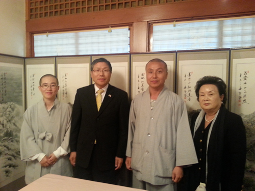 불교계도 한국전참전기념비 건립에 동참했다. 산브루노 여래사 700달러, 몬트레이 카멜 삼보사 600달러를 건립성금으로 전달했다. 왼쪽부터 여래사 소원스님,한동만 총영사, 삼보사 운월스님, 김영자 자비봉사회장.