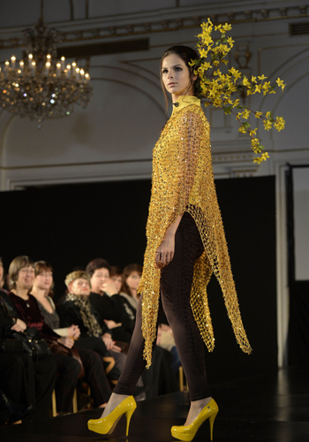 23일 헝가리 부다페스트에서 열린 부다페스트 패션위크 행사에서 한 모델이 우아한 자태를 뽐내고 있다.