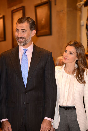 스페인의 펠리페 왕세자(45)와 레티지아 왕세자비(41)가 13일 북가주 샌칼로스를 방문, 환영행사에 참석하고 있다.