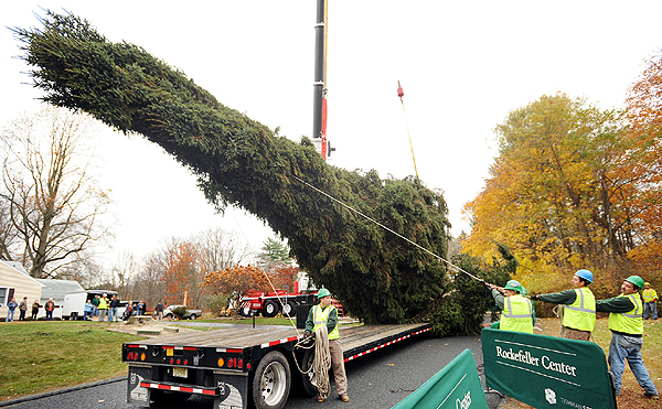 올 겨울 내내 맨하탄 라커펠러 센터 광장을 밝혀줄 크리스마스 트리는 커네티컷 쉘톤의 바르고시 가족의 80피트 높이의 노르웨이 전나무로 낙점됐다. 7일 인부들이 전나무를 자른 뒤 뉴욕으로 옮길 준비를 하고 있다. 라커펠러 센터의 대형 크리스마스 트리는 다음달 4일 시민들에게 공개된 뒤 내년 1월 7일까지 붉을 밝힐 예정이다.