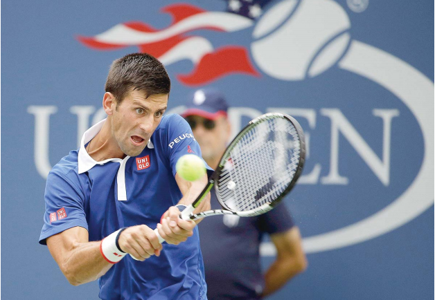 US오픈 테니스대회 첫날인 31일 남자단식 1회전에서 노바크 조코비치(1위·세르비아)가 상대 조앙 소우사(브라질)의 공을 받아치고 있다. 이날 조코비치는 소우사를 3-0으로 승리한 후 2회전에 진출했다.