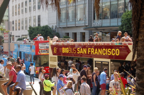 샌프란시스코는 관광객들로 넘쳐나는 도시이다. 거주민보다 한해 관광객수가 더 많다는 샌프란시스코는 전세계인들이 꼭 가보고 싶은 로망의 도시이다. 지난 주말 저마다 품은 기대와 열망을 가진 관광객들이 유니온스퀘어에서 샌프란시스코 버스투어에 나서고 있다.