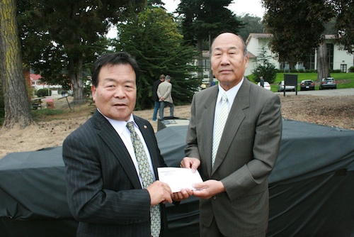 2주 남짓 남은 'SF 한국의 날' 축제의 성공적 개최를 바라며 김관희(오른쪽) SF 한미노인회장이 전일현 SF 한인회장에게 27일 후원금을 전달했다. 제21회 한국의 날 축제는 8월10일(토) 오전10시-오후4시 샌프란시스코 유니온스퀘어에서 열릴 예정이다.
