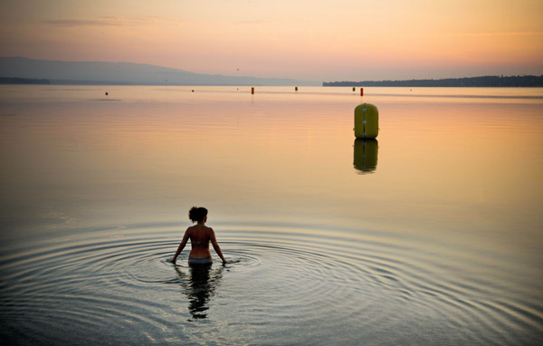 호수의 일출..