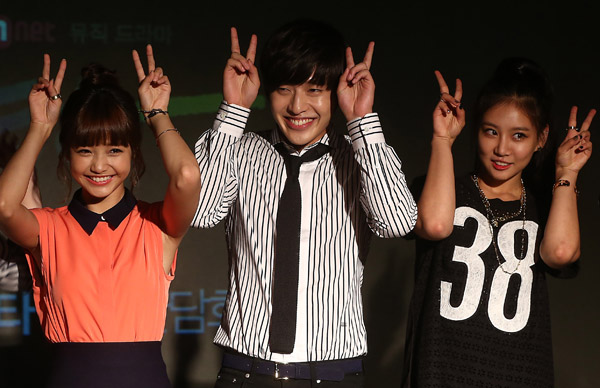 10일 경기도 남양주의 한 야외캠핑장에서 열린 SBS TV 힐링캠프-기쁘지 아니한가 100회 기자간담회에 참석한 이경규, 김제동, 한혜진. < 연 합 >