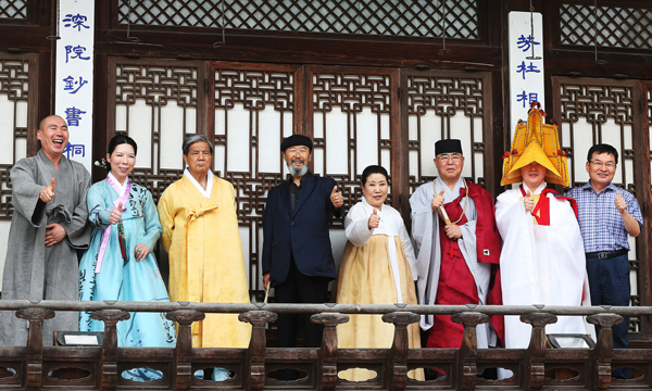 1 978년부터 1991년까지 방송된 최고 인기의 TV 시리즈‘달라스’ 리메이크 시리즈의 패트릭 더피(왼쪽 세 번째·64)와 린다 그레이(네 번째·72) 등 출연진들이 12일 모나코에서 홍보행사를 갖고 있다. < AP>