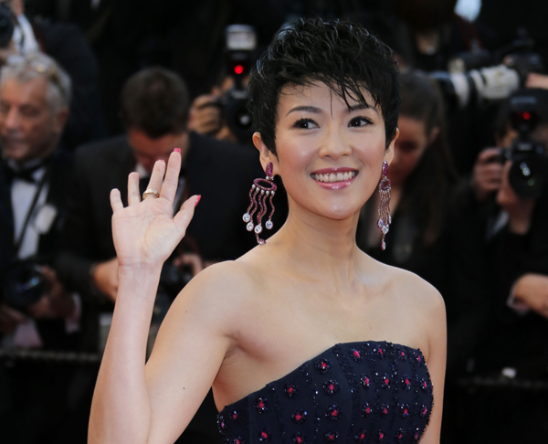 중 국 여배우 장쯔이(34)가 개막식에 입장하며 환하게 웃고 있다.