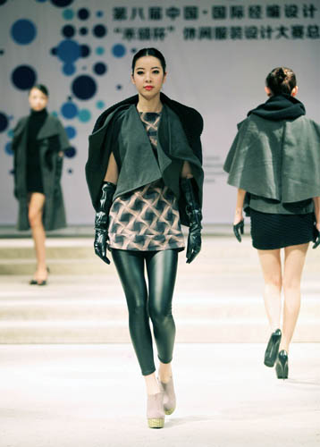 모델들이 11일 중국 상하이에서 열린 패션쇼에서 초록색 계통의 개성 있는 의상들을 선보이고 있다.