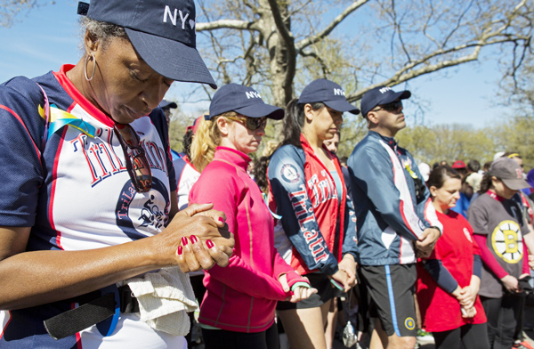 21일 미국 뿐 아니라 세계 곳곳에서 보스턴 마라톤 폭탄 테러 희생자들 돕기 기금모금 마라톤 행사가 펼쳐졌다. 이날 맨하탄 센트럴 팍에서 열린 4마일 구간의 보스턴 돕기 마라톤 대회 참가자들이 희생자들을 추모하며 묵념하고 있다.