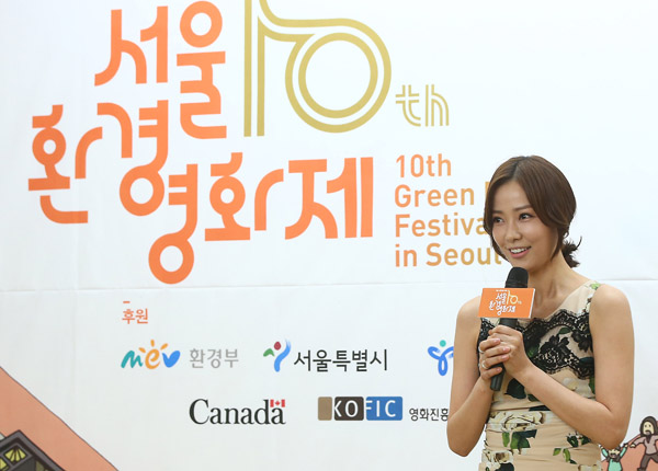 16일 서울 중구 정동 환경재단이서 열린‘2013 서울 환경영화제’ 공식기자회견에서 에코 프렌즈로 위촉된 배우 손태영이 소감을 말하고 있다.