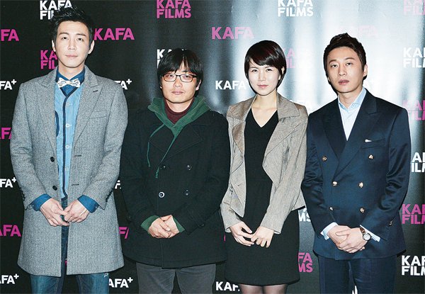 5일 서울 성동구 행당동 CGV 왕십리에서 열린 영화‘누구나 제 명에 죽고 싶다’(감독 김승현) 언론시사회에서 배우 최원영(왼쪽부터), 김승현 감독, 김이정, 강호가 포즈를 취하고 있다.