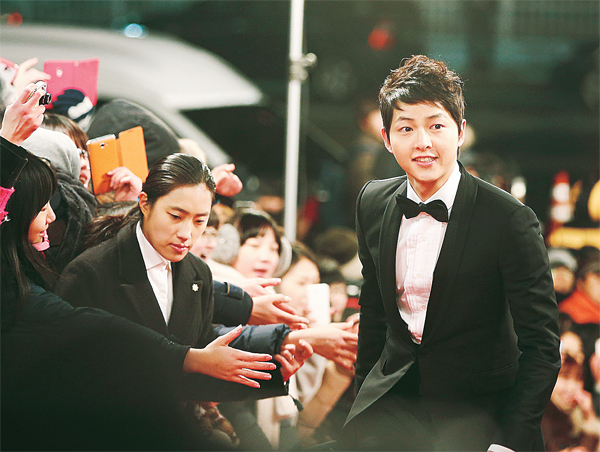 배우 송중기가 31일 서울 여의도 KBS에서 열린‘2012 KBS 연기대상’에 참석해 레드카펫을 밟고 있다.